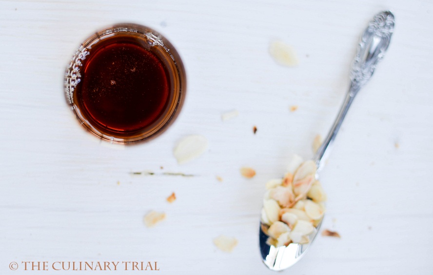 - Die Mandelblättchen in einer Pfanne ohne Fett goldbraun rösten, dann über die Schnittchen streuseln.