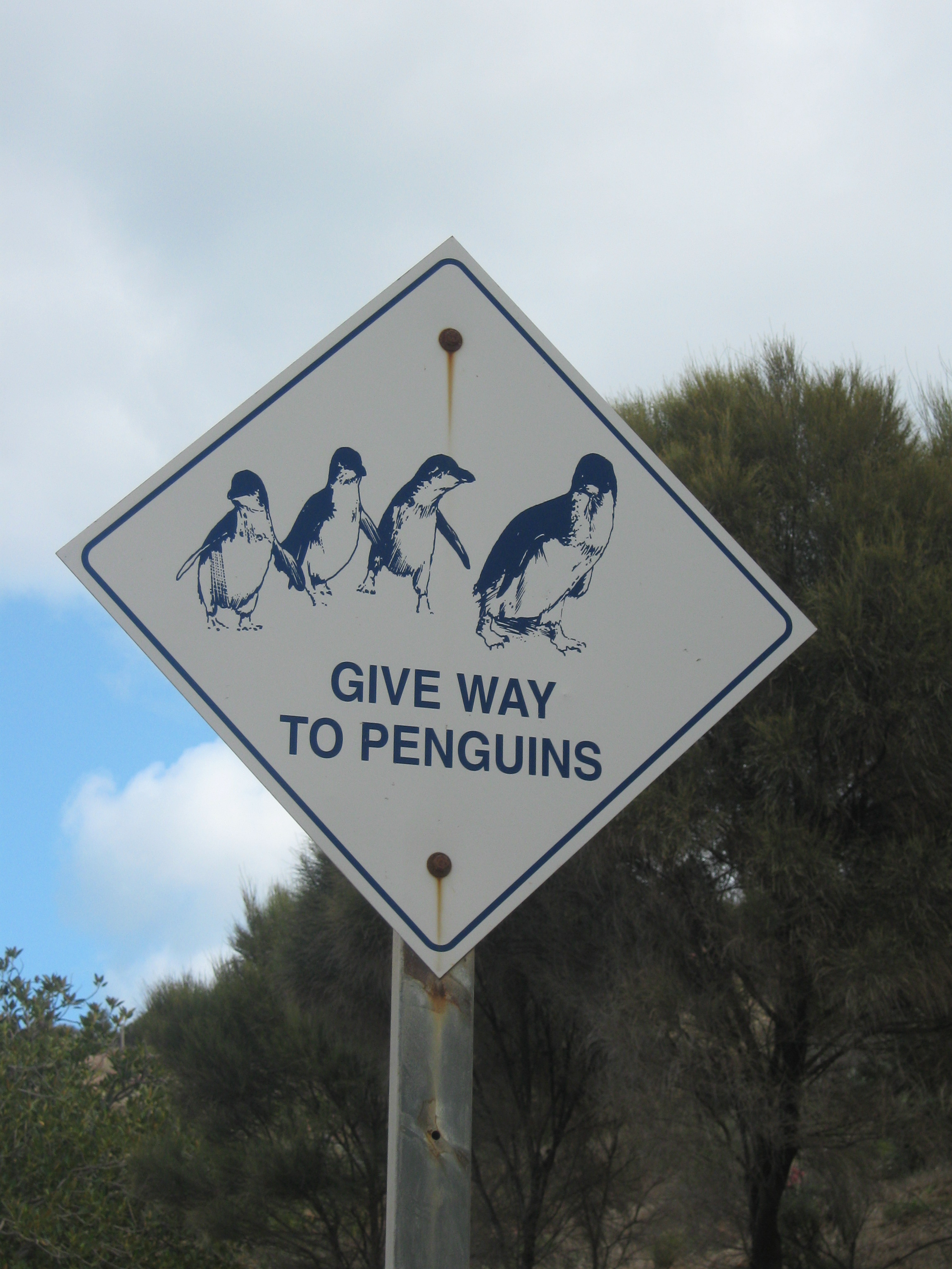 Mit dem Mietwagen- nennen wir es zärtlich Schlachtschiff 1- wollten wir dann am nächsten Tag runter nach Kangaroo Island fahren, um dort ein, zwei Nächte zu bleiben und uns ein bisschen umzusehen. Da 600 australische Dollar für die Fährfahrt allein jedoch mordsmäßig viel Geld sind (denn 1 Oz-$ sind ca. 0,75€, also demnach sind 600$ knapp 450€…), entschieden wir uns, Expensive-Island hinter uns zu lassen und dennoch die Mission „Pinguine-finden“ im Auge zu behalten. Also ging es ab nach Victor Harbor, verschrien dafür, dass in der Dämmerung die Pingus durch die Gegend watscheln. Genauer gesagt auf Granite Island sollten diese schnuckeligen Tierchen zu finden sein und zudem wurde auch ein Kutsche ziehendes Pony versprochen. Nun ja, im Endeffekt gab es weder Pingus noch Ponies, aber dafür viel Natur, schicke Steine und riesige Wellen.